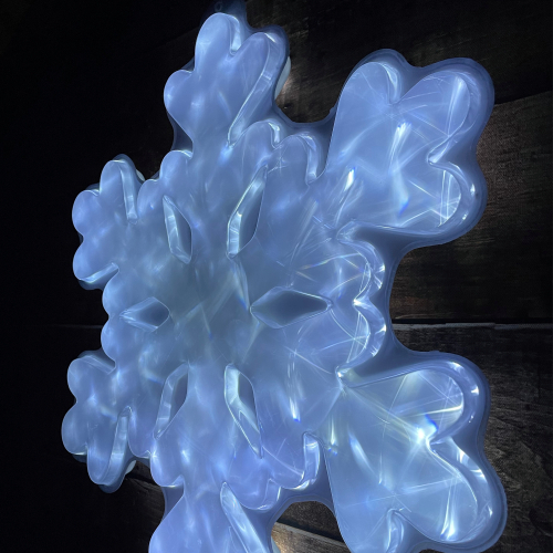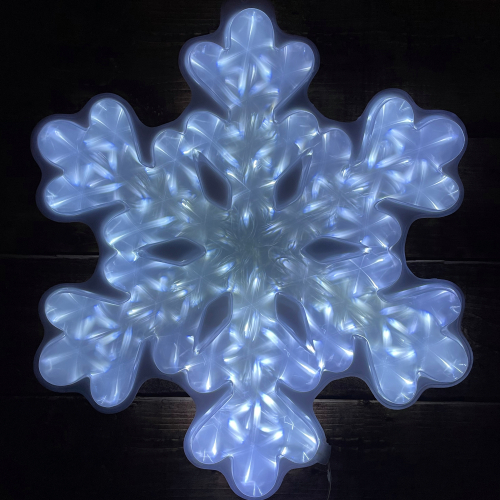 Новогодняя настенная светодиодная фигура ЭРА "Снежинка" (арт. Б0041936) для праздничного декора внутри и снаружи помещений. Защищена от влаги и пыли (IP44), отличается морозостойкостью. Работает от стандартной электросети 220 В, прозрачный провод практически не заметен. Изготовлена из ударопрочного пластика. LED-фигура представляет собой узорчатую снежинку. Светится холодным белым светом. Дизайн фигуры идеально подходит к зимним праздникам. Размеры фигуры: 50 х 3,5 х 48 см. Свет создают 48 ярких и экономичных светодиодов, которые не перегреваются даже при длительной работе без перерывов. Новогодняя LED-фигура - простой и быстрый способ создать праздничное настроение, украсить дом, офис, общественное пространство.