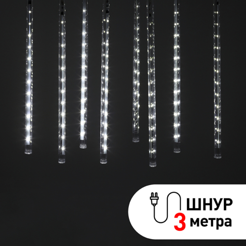 Новогодняя светодиодная гирлянда "Сосульки" (арт. Б0041910) с динамичным свечением: свет в каждой из 8 сосулек "течет" вниз в разное время - так создаётся эффект естественной капели, который поддерживается и цветовой температурой (холодный белый свет). Длина сосульки - 30 см, в каждой - по 18 ярких экономичных LED-диодов. Эта лаконичная стильная гирлянда отлично подходит для украшения пространства в зимнем сезоне, великолепно смотрится на окнах, фасадах зданий. Защищена от влаги и пыли (IP44), морозостойка - можно использовать на улице в регионах с низкими температурами. В комплект входит трансформатор - гирлянда полностью готова к подключению и отвечает требованиям пожарной безопасности. Ещё одно преимущество - специальный разъём для сопряжения с другими гирляндами. Такая модульная конструкция позволяет соединять в единую цепь до 4 гирлянд ЭРА "Сосульки", создавая длинный световой ряд для максимально эффектной иллюминации. Современная светодиодная технология экономит до 90% электроэнергии