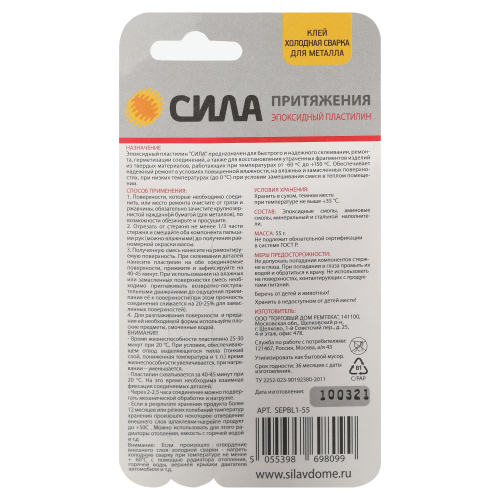 Предназначен для быстрого и надежного склеивания, ремонта, герметизации соединений, а также для восстановления утраченных фрагментов изделий, работающих при температурах от -60ºС до +150ºС. Обеспечивает надежный ремонт в условиях повышенной влажности, на влажных и замасленных поверхностях, при низких температурах (до 0ºС) при условии замешивания смеси в теплом помещении.