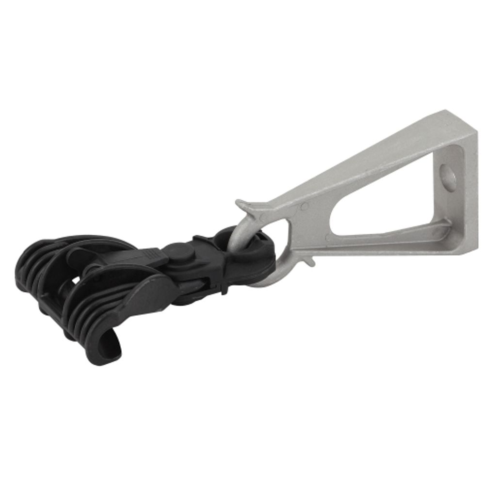 Промежуточный поддерживающий зажим представляет собой жесткую сборку несущего кронштейна и собственно подвеса. Используется для поддерживающего крепления изолированной несущей нейтрали на промежуточных опорах.