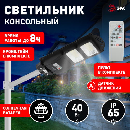 Консольные уличные LED-светильники ЭРА на солнечных батареях эффективно работают круглый год. Солнечная батарея встроена в корпус и занимает всю внешнюю часть плафона. На внутренней части размещены светодиодные платы (одна или несколько - в звисимости от модели) с яркими и экономичными LED-элементами COB последнего поколения и широкими светоотражателями.