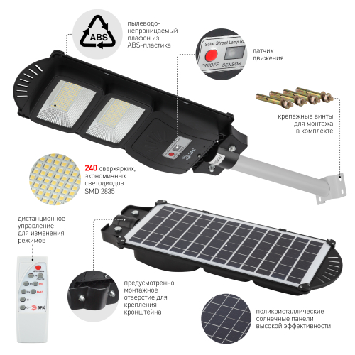 Имеют авторежим, позволяющий с успехом экономить заряд. В течение первого часа после включения светят со 100% яркостью, следующие 3 часа - с 70% яркостью и далее до рассвета - с 30% яркостью. Так мы получаем максимально яркий свет в нужное время (вечером, сразу после захода солнца) и гарантию того, что дополнительного освещения хватит до самого утра. Ещё одно важное преимущество для экономии заряда - в светильники встроен датчик движения. Освещение будет включено только в тот период, когда рядом со светильником находятся люди. Это значит, что светильники не будут работать ночью "зря". Обе эти функции - и авторежим, и датчик движения - можно отключать, если для вас они неактуальны. И снова включать, если данные опции понадобились. В комплекте поставляется пульт дистанционного управления, который позволяет на расстоянии включать и выключать свет, отключать датчик движения, устанавливать таймер работы, регулировать яркость. Надёжно защищены от влаги и пыли (IP65) и отлично работают в широком температурном диапазоне (от -20°C до +60°C). Оснащены морозоустойчивым сменным аккумулятором Li-FePO4.