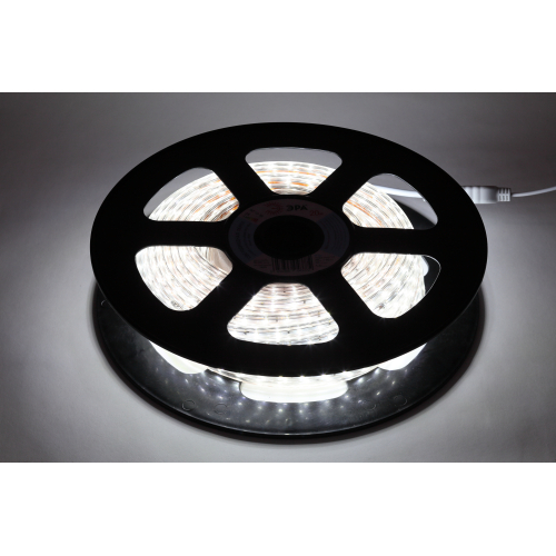 ЭРА Лента светодиодная LS2835-4,8-60-220-6500К-IP67-20m (4/96) со степенью защиты от пыли и влаги IP67 - рекомендуется для уличной подсветки. Cветодиодная лента устанавливается при помощи крепежей (монтажных скоб), монтаж на двусторонний скотч исключён. Торцы ленты необходимо закрывать заглушками. Рекомендуется для уличной подсветки.. Рабочее напряжение ленты составляет 220В, а мощность равна 4,8 Вт/м. Светодиодная лента обладает световым потоком 350 Лм/м, и цветом свечения - холодный белый (6500 K)