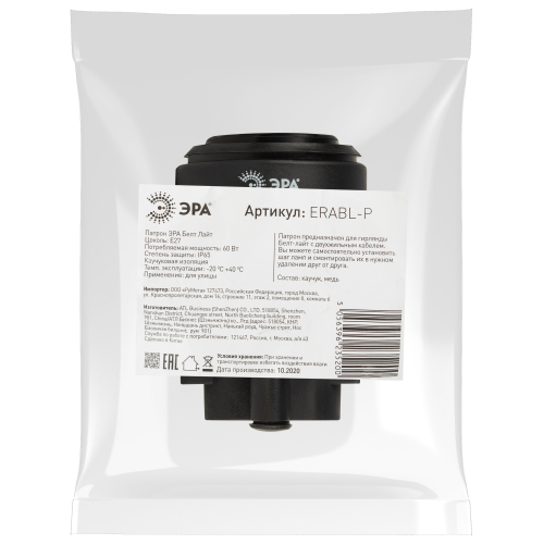 Патрон Е27 для гирлянды ЭРА "Белт-лайт" с двухжильным кабелем. Дает возможность самостоятельно установить шаг ламп и монтировать их в нужном удалении друг от друга. Предназначен для самостоятельного дизайна и монтажа праздничной иллюминации. Устойчив к зимним погодным условиям, защищён от влаги и пыли (IP65). В составе гирлянды-конструктора ЭРА "Белт-лайт" позволяет создавать уникальное праздничное освещение по индивидуальным параметрам и для конкретных задач. Вы сами выбираете длину подсветки, цвет ламп и расстояние между источниками света! Это идеальное решение для декора фасадов зданий, оформления витрин, общественных пространств на свежем воздухе. Другие элементы гирлянды-конструктора: кабель Б0049175, набор для подключения (шнур питания с вилкой + коннектор) Б0049180, коннектор Б0049179, заглушка Б0049181, заглушка с крюком Б0049182. В ассортименте ЭРА LED-лампы "Белт-лайт" E27 разных цветов. Они идеально подходят для комплектации с данными патронами.