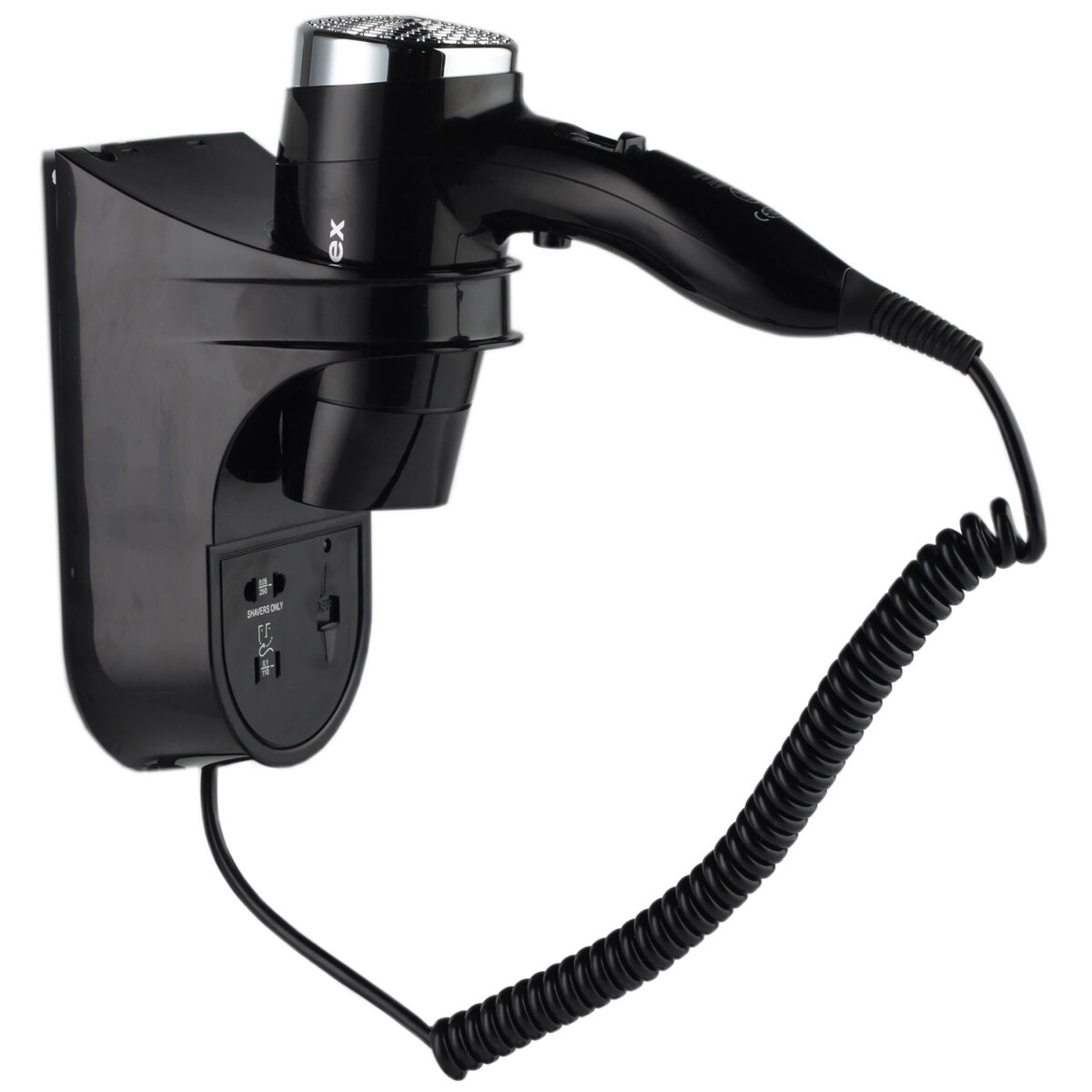 Фен для волос. С розеткой для бритвы (1400 Вт). Черный.