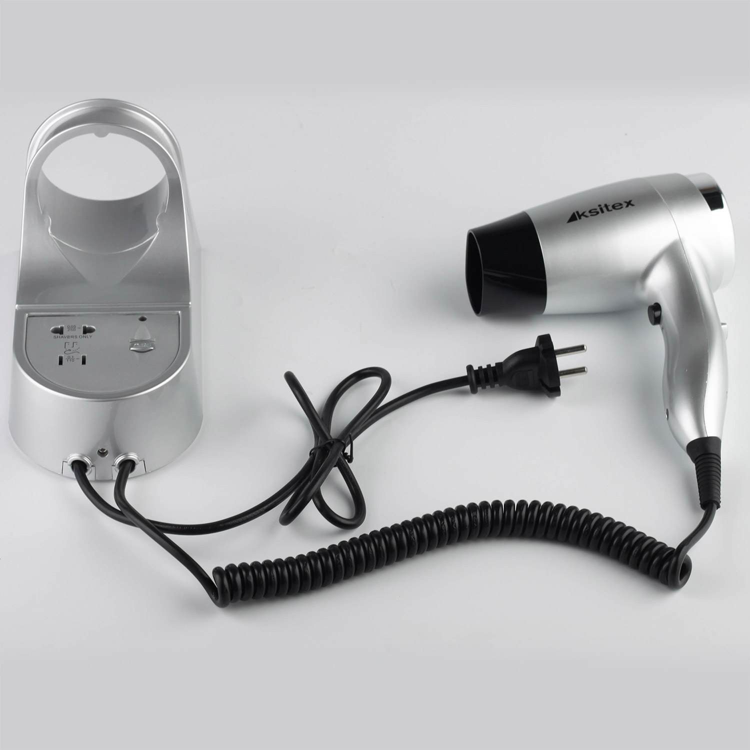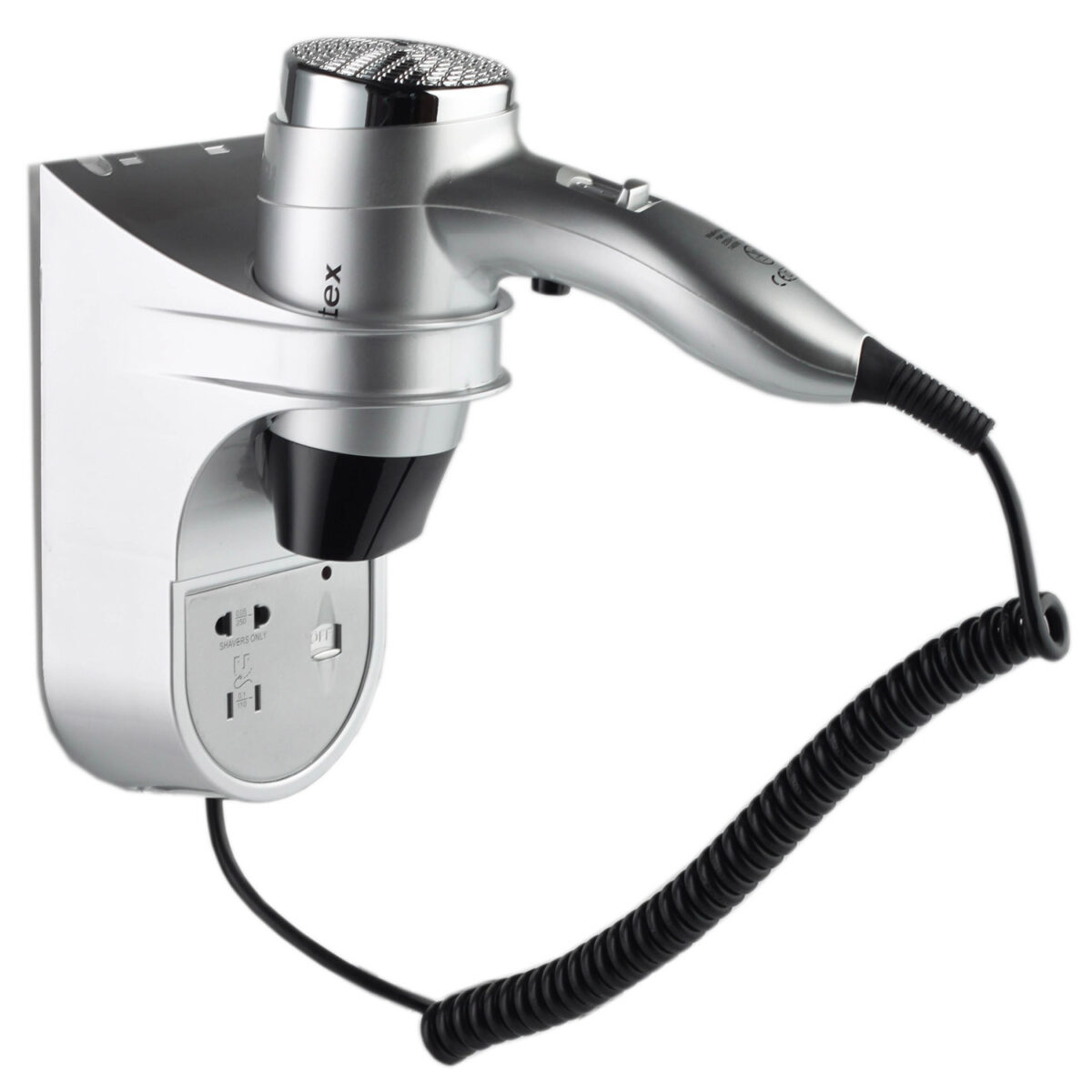 Фен для волос. С розеткой для бритвы (1400 Вт). Серебро.