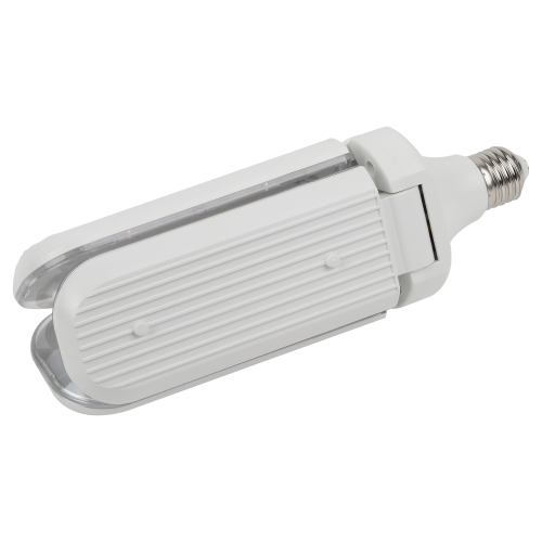 Блок питания и светодиоды расположены отдельно. LED-элементы размещены на алюминиевых платах. Каждая плата равномерно распределяет тепло, светодиоды не перегреваются и светят гарантированно 30 000 часов. Прочный негорючий корпус базового белого цвета. Блок питания оснащён варистором, который защищает лампу от высокочастотных помех в сети.