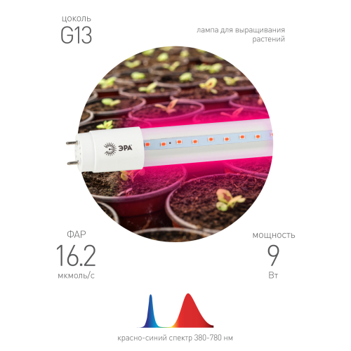 Фитолампа с цоколем G13 красно-синего спектра FITO-9W-RB-Т8-G13-NL мощностью 9 Вт от компании ЭРА необходимая вещь для Ваших растений. Она позволит Вам не только красиво оформить интерьер дома цветами, но и собрать небольшой урожай! Подойдет для зелени, капусты, а также некоторых видов пасленовых. 46 светодиодов с направленным фиолетовым светом ускоряют процесс фотосинтеза. Прозрачное светопроницаемое стекло эффективно воздействует на рассаду. Фитолампа рекомендована для эксплуатации в помещениях с естественным светом и обычными лампами 4000 К. Небольшие габариты: длина 60 см, диаметр колбы - 2,6 см позволяют разместить ее в комнате небольшой площади. Идеальна для вертикального выращивания. Площадь освещения составляет 0,7 м2. FITO-9W-RB-Т8-G13-NL лампа безопасна для человека. Коэффициент пульсаций в 5% снижает риск воздействия на глаза. Цветовая температура в 1200 К подарит приятное свечение. Лампа ЭРА залог красивых цветов и спелого урожая!