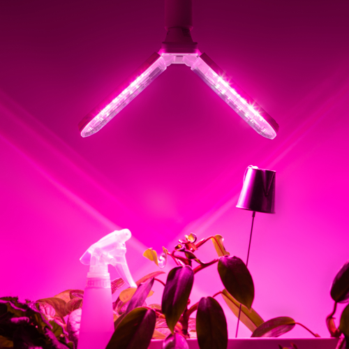 Лепестковая лампа розового свечения для выращивания растений, рекомендуемое расстояние 25 см над верхушками растений.