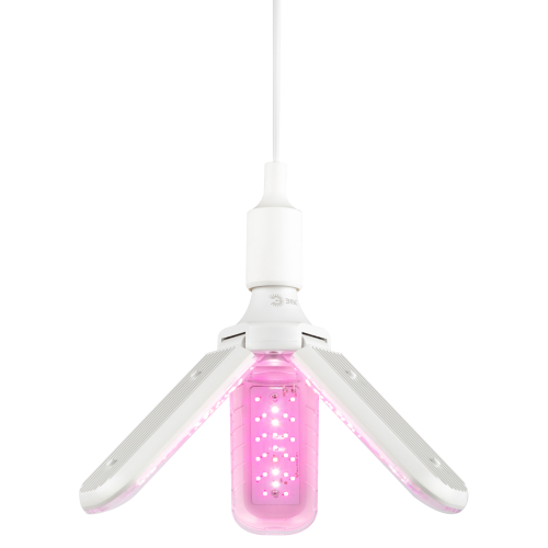 Мощная 3х лепестковая лампа розового свечения позволит легко выращивать рассаду и цветы круглый год.