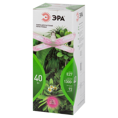 Фитолампа ЭРА GREEN LINE мощностью 40 Вт с красно-синим спектром обеспечивает эффективное освещение для рассады на площади до 2 м². Лампа оснащена четырьмя регулируемыми лепестками, которые поворачиваются на 180 градусов, позволяя создать индивидуальные сценарии подсветки. Рекомендованная высота установки — от 15 до 75 см.