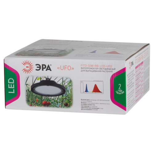 Фитопрожектор для растений светодиодный ЭРА FITO-50W-RB-LED-UFO - это профессиональное решение для рассадных отделений и межрядной досветки томатов, зелени и других растений. Красно-синий спектр восполняет недостаток солнечного света и улучшает рост и урожайность. Рекомендуемое расстояние размещения прожектора 0,3-0,75 м от верхушек растений. Улучшенная защита корпуса от коррозии позволяет прожектору работать в условиях теплиц, рассеиватель изготовлен из закаленного стекла, степень защиты изделия IP65. Эффективность данного прожектора соответствует нормативам тепличных хозяйств, коэффициент мощности позволяет не перегружать сети теплицы.