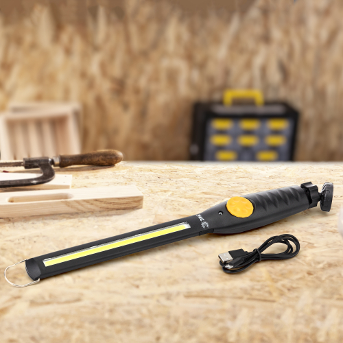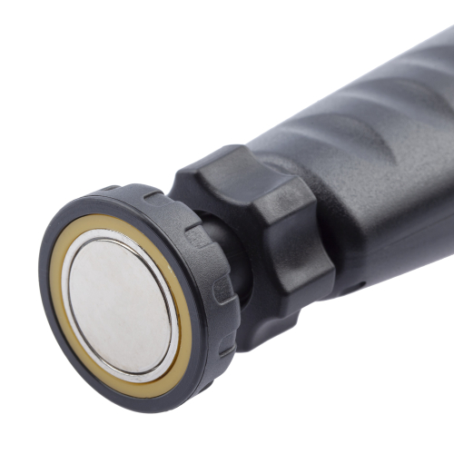 Главный плюс аккумуляторного фонаря заключается в его мобильности. Он оснащен петлей для подвешивания, а также магнитом в основании. Это позволяет закреплять фонарь на самых различных поверхностях.
