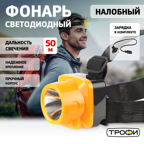 Фонарь налобный светодиодный Трофи TG1 аккумуляторный, яркий, 4V0.5Ah, 1xLED, ЗУ 220V