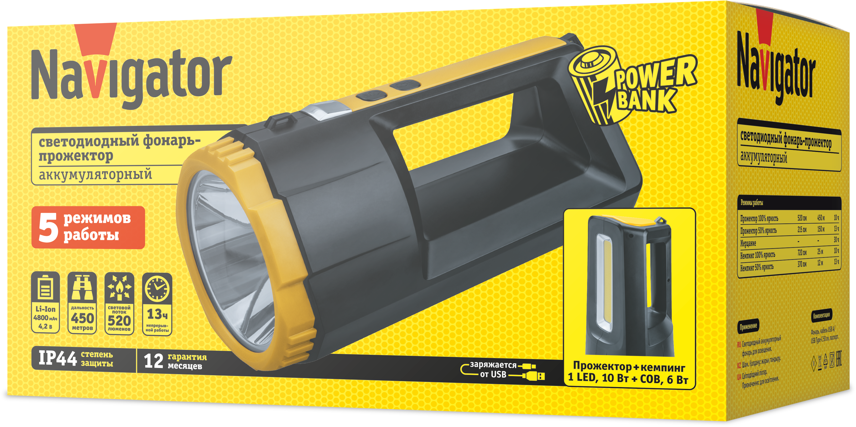 Фонарь-прожектор многофункц./кемпинговый