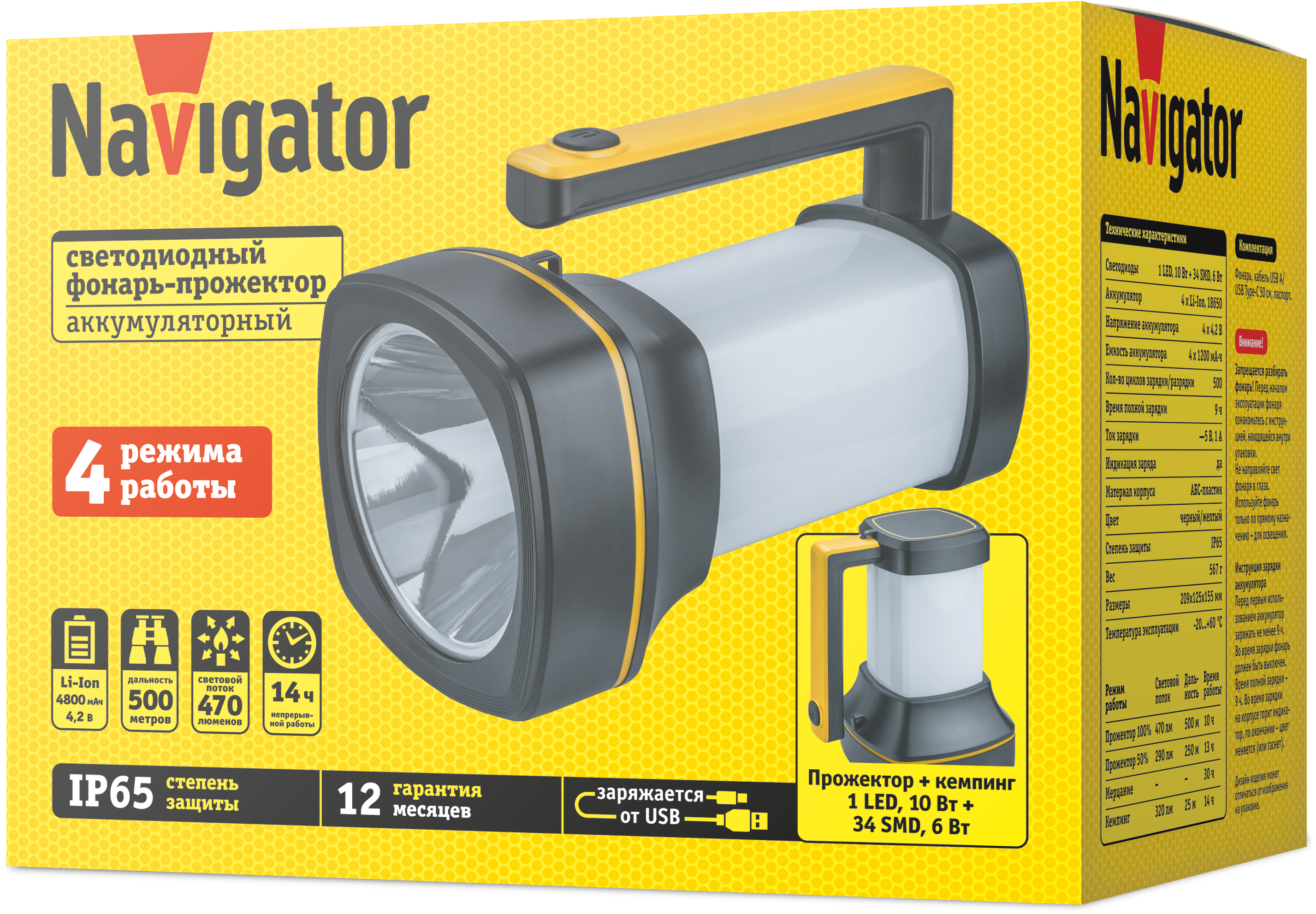 Фонарь-прожектор многофункц./кемпинговый