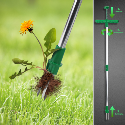 Корнеудалитель Green Apple GAKU06-05 - удобный ручной аксессуар для работы в саду и огороде. С его помощью можно быстро и аккуратно удалять из почвы корни растений. Благодаря конструкции с тремя зубцами он проникает легко в почву, выдерживая сорняки без усилий. Благодаря удлиненной штанге корнеудалитель Green Apple GAKU06-05 допускает работу в положении стоя, позволяя не наклоняться. Это обусловлено общей длиной инструмента 97.5 см. Для того, чтобы удалить сорняк с корнем, нужно нажать на ручку, прокрутить корпус устройства, после чего выдернуть растение из земли с корнем. Весь процесс происходит быстро.