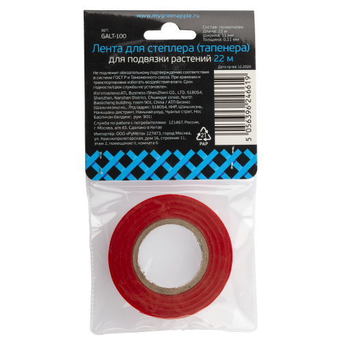 Лента для тапенера GREEN APPLE GALT-100 используется для подвязки растений. Лента для тапенера это расходный материал, с помощью которого происходит подвязка растений. Лента имеет специальные свойства, такие как удлинение до разрыва.