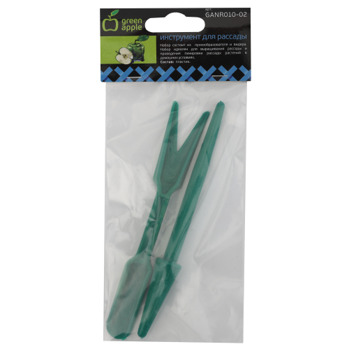 Посадку растений удобнее производить с помощью специального набора от компании Green Apple. Набор GANR010-02 состоит из лункообразователя и видера. Сажалка-лункообразователь - приспособление, используемое в саду или огороде для образования лунок под высадку различных растений. Облегчает и ускоряет работу, обеспечивает точное соблюдение глубины посадки. Видер предназначен для выпалывания сорняков и растений с корнем.