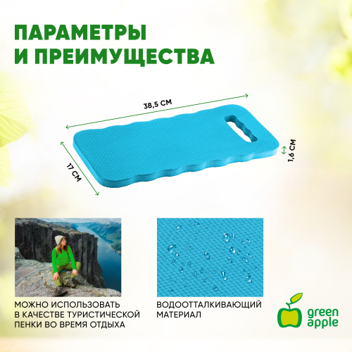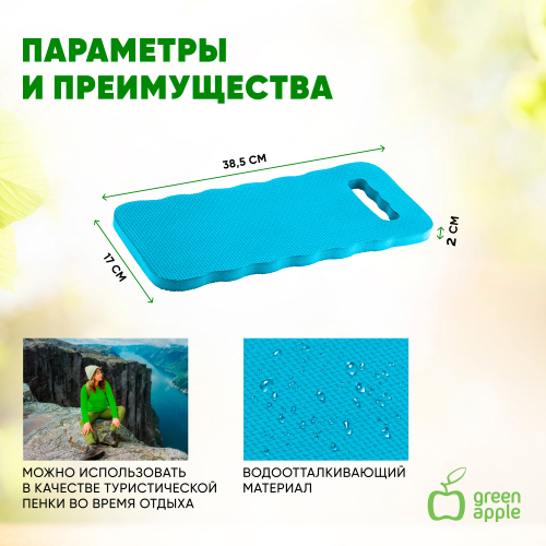 Подколенник Green Apple GAPS048-08 390х140х20 мм предназначен для работы в саду и огороде. Может быть использован для отдыха во время работы в виде сиденья. Предохраняет от холода и сырости, не пропускает влагу. Обеспечивает дополнительный комфорт и помогает защитить суставы и колени от повреждений. Дополнен удобной ручкой. Подколенник легко очищается от загрязнений. В отличие от ножек садовых скамеек он не оставляет глубоких следов на поверхности, поэтому может использоваться даже на газоне без опасности повредить траву.