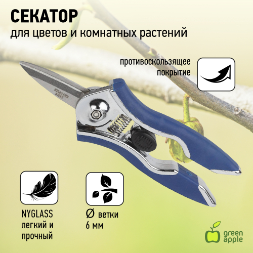 Секатор Green Apple GAYW06-078 предназначен для срезания цветов и тонких стеблей. Секатор имеет удобный надежный фиксатор, ручки выполнены из качественного материала с удобным противоскользящим покрытием, который не скользит в руках, а благодаря эргономичной форме работать с ножницами очень удобно даже в течение длительного времени. Green Apple GAYW06-078 из закаленной качественной стали имеет специальные насечки на остром нижнем лезвии, что обеспечивает точный аккуратный чистый рез. Прекрасное качество понравятся практичным садоводам и любителям цветов.