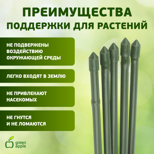 Опора для растений высотой 180 см - садовый аксессуар для поддержки тонкого стебля или ствола растения в вертикальном положении. Поддержка изготовлена из металла, покрытого пластиком - эти материалы не наносят вред здоровью рассады, безопасны для окружающей среды. Широко используются для декоративных садовых и комнатных растений. Также применяется для поддержки вьющихся растений в парниках. С ней Ваши растения будут расти здоровыми и сохранять заданную форму, ведь она создает надежную основу для саженцев, растений при цветении или вьющихся кустарников. Держатель аккуратно дополнит композицию растения, обеспечивая бережный уход.