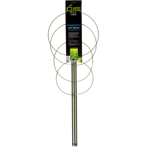 Поддержка для цветов состоит из 4-х колец и используется в качестве опоры для садовых и комнатных растений. Благодаря пластиковому покрытию она не подвержена воздействию окружающей среды. За счет зеленого цвета поддержка не отвлекает на себя внимание, легко маскируется среди ветвей. Кольцевая опора для растений высотой 90 см используется в качестве поддержки раскидистых культур. Отличается прочностью, устойчивостью к агрессивному воздействию окружающей среды. Не гниет, не имеет ограничений по сроку годности. Хорошо выдерживает вес растений, не деформирует листовые пластины и стебли.