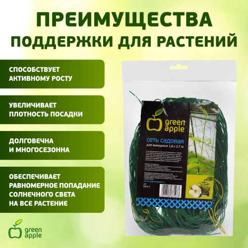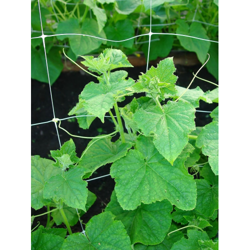 Сеть для вьющихся растений 2.7х1.8 м позволяет по-новому посмотреть на выращивание однолетних культур, особенно таких овощей как огурцы, горох, фасоль и даже кабачки. Их не нужно подвязывать, с помощью усиков они цепляются за опору и быстро оплетают ее. Вертикальный метод выращивания овощей в открытом грунте значительно расширяет возможности возделывания подобных культур. Полиэтиленовая сеть почти невесомая, но очень крепкая. Она не дает тени, не ограничивает циркуляцию воздуха и практически незаметна в листве.