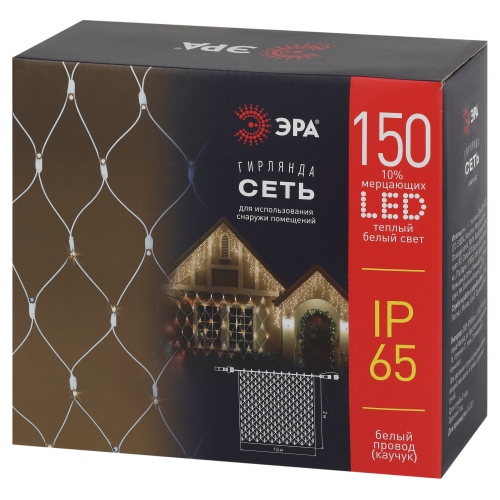 Профессиональная уличная гирлянда-сеть ЭРА ERAPS-SK2 с теплым белым светом и эффектом мерцания. В составе гирлянды новогодней для улицы 150 ярчайших светодиодов последнего поколения, 20% из которых мерцающие - такое свечение создает волшебную и очень уютную праздничную атмосферу на улицах города или во дворе загородного дома. Провода гирлянды уличной изготовлены из белого каучука - популярное и удачное решение для зимы. Мягкий прочный каучук высокого класса морозостоек, сохраняет свои свойства даже при очень низких температурах, не боится осадков. Новогодняя профессиональная гирлянда ЭРА позволяет реализовать масштабные световые системы для праздничного украшения улиц, парков, площадей, уличных новогодних ярмарок, фасадов зданий. Профессиональное новогоднее освещение ЭРА выпускается в формате конструктора - можно заказать нужные вам гирлянды, коннекторы, разветвители и другие электрические аксессуары для подключения иллюминации в зависимости от конкретных задач проекта.