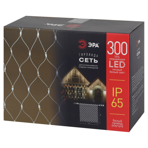 Профессиональная светодиодная гирлянда-сеть ЭРА ERAPS-SKW1 для улицы светит с необычным эффектом мерцания. Из 300 LED источников света с теплым белым свечением 10% светодиодов имеют холодное белое мерцание. Это необычное решение создает по-настоящему волшебный свет. Провода гирлянды изготовлены из морозостойкого каучука, все соединения отлично защищены от влаги, снега и ветра (международный индекс защиты IP65), а каждая лампочка оснащена прозрачным влагозащитным колпачком. Такая мощная, яркая и надежная LED-гирлянда - превосходное решение для проектной уличной иллюминации: гирлянда на фасад здания, гирлянда во двор, гирлянда для парка, гирлянда для веранды ресторана или кафе, для площади, уличной новогодней ярмарки, катка. В совокупности с другими гирляндами и электрическими аксессуарами ассортимента профессионального проектного праздничного освещения ЭРА дает возможность создавать длинные световые цепи. Размер гирлянды на улицу: 2 х 3 метра. Яркая праздничная гирлянда-сеть будет радовать много сезонов подряд.