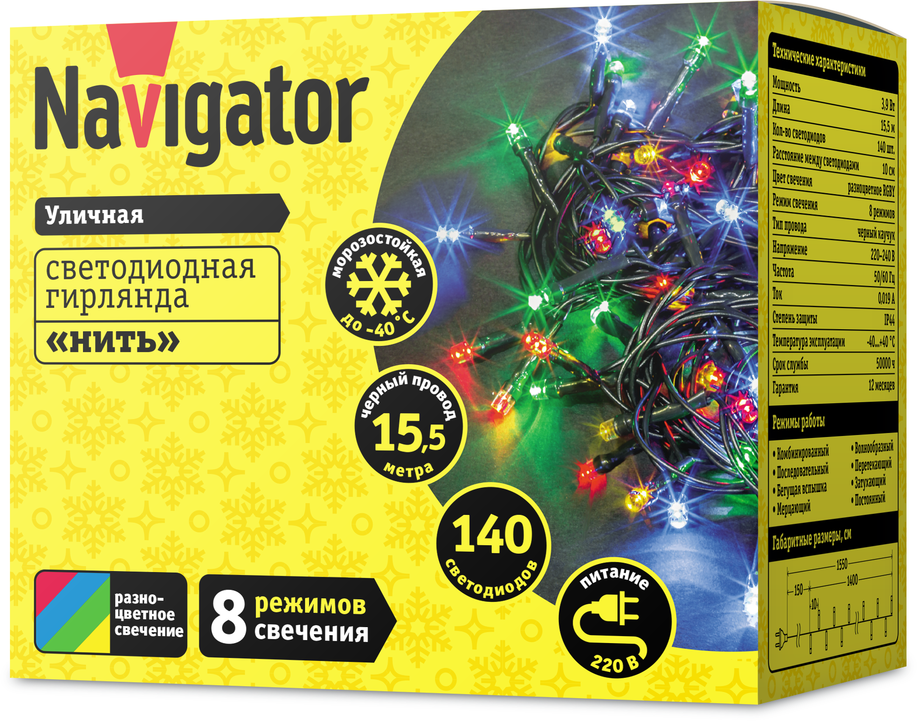 Светодиодные ленты и гирлянды > Уличные гирлянды > Уличные гирлянды сетевые 220 В 52