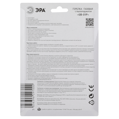 Газовая горелка на баллон с встроенным пьезоэлементоми регулятором подачи газа. Область применения: работа с термоусаживаемыми материалами, плавка и сварка изделий из стекла и пластмасс, разжигание огня (костер, мангал, камин и кальян), разморозка замков, водопроводных труб, удаление старой краски, обработка поверхностей и местный подогрев в производственных, лабораторных условиях, в мастерских.