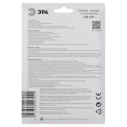 Газовая горелка на баллон с встроенным пьезоэлементом и регулятором подачи газа, для появления искры необходимо произвести нажатие на сам вентиль. Область применения: работа с термоусаживаемыми материалами, плавка и сварка изделий из стекла и пластмасс, разжигание огня (костер, мангал, камин и кальян), разморозка замков, водопроводных труб, удаление старой краски, обработка поверхностей и местный подогрев в производственных, лабораторных условиях, в мастерских.