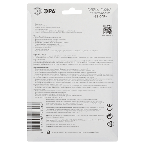 Газовая горелка на баллон с встроенным пьезоэлементом и регулятором подачи газа. Область применения: работа с термоусаживаемыми материалами, плавка и сварка изделий из стекла и пластмасс, разжигание огня (костер, мангал, камин и кальян), разморозка замков, водопроводных труб, удаление старой краски, обработка поверхностей и местный подогрев в производственных, лабораторных условиях, в мастерских.