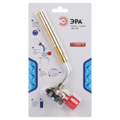 Диаметр сопла: 10 мм. Время прогрева: 70-90 секунд. Температура пламени: 1300 °С (макс.). Тип газового баллона: цанговый. Тип поджига: ручной. Материал изделия: (алюминий, медь, сплав цинка, пластик).