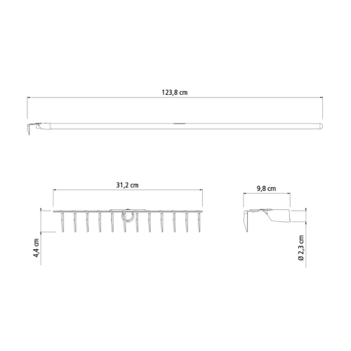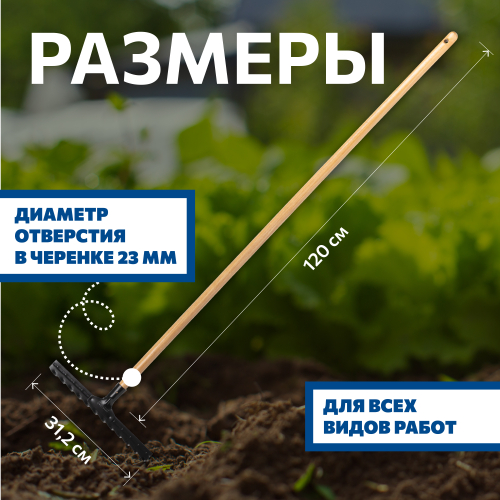 - Рукоятка длиной 120 см отличается высокой прочностью и изготовлена из древесины из возобновляемых источников.