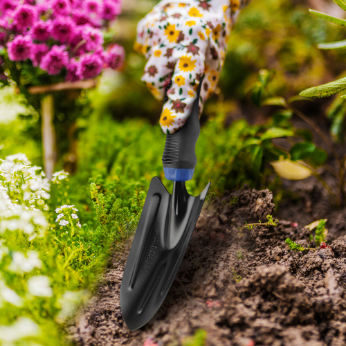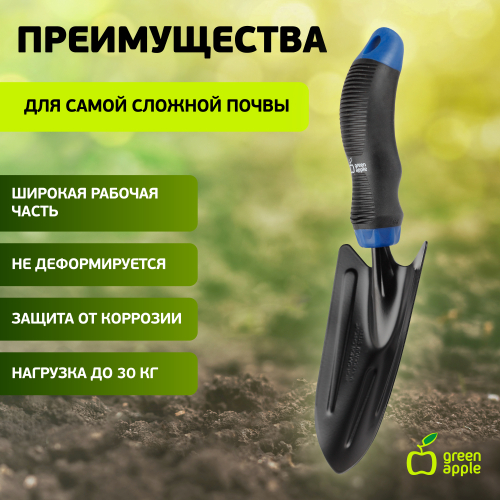 Широкая лопатка Green Apple применяется для посадки и пересаживания растений. Молибден - защита от коррозии и налипания грязи. Эргономичная форма ручки. Термопластичная резина с противоскользящими свойствами обеспечивает надежный захват. Лопатка подходит для широкого спектра садовых задач, стойка к износу благодаря качественным материалам. С инвентарем Green Apple работа в саду всегда в радость!