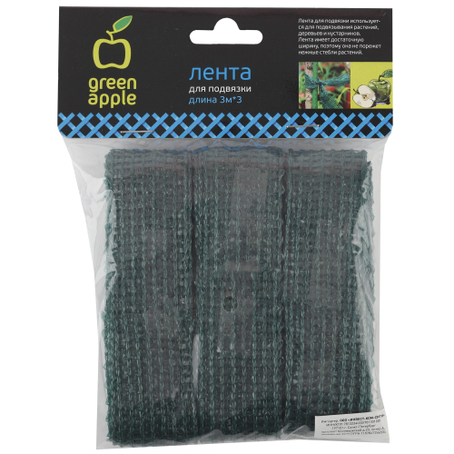Лента для подвязки растений может использоваться для фиксации на неподвижной опоре комнатных и уличных растений. Лента имеет достаточную ширину, поэтому она не травмирует нежные стебли растений. Длина 3 м, 3 шт. Цвет - зеленый. Служит для надежного крепления и быстрого укоренения и приживаемости саженцев. Изготовлена из волокон поливинилхлорида. Рекомендуем использовать ленту вместе с опорами от компании Green Apple. С садовыми аксессуарами Green Apple работа в саду всегда в радость!