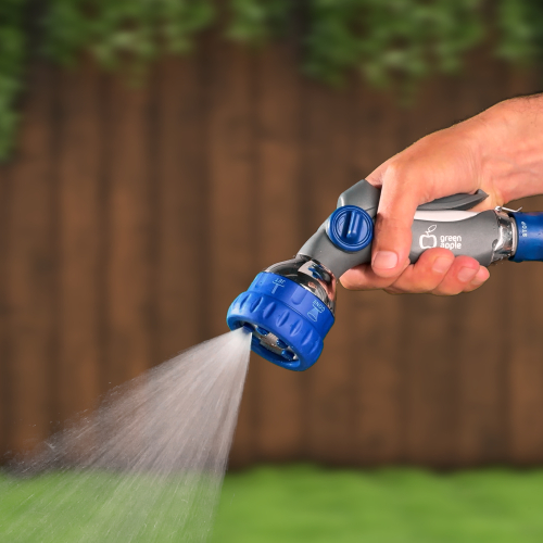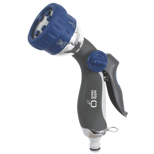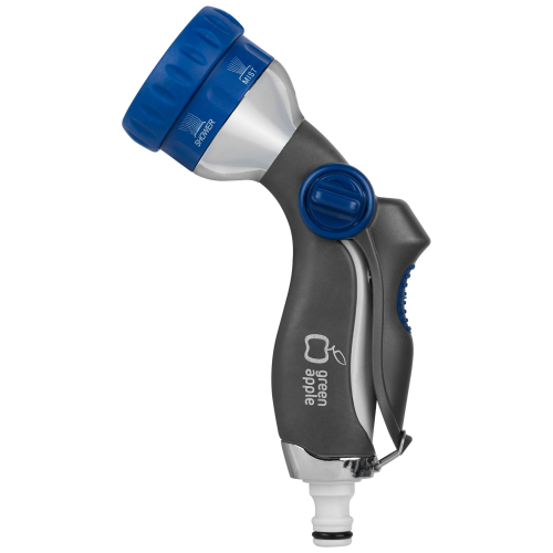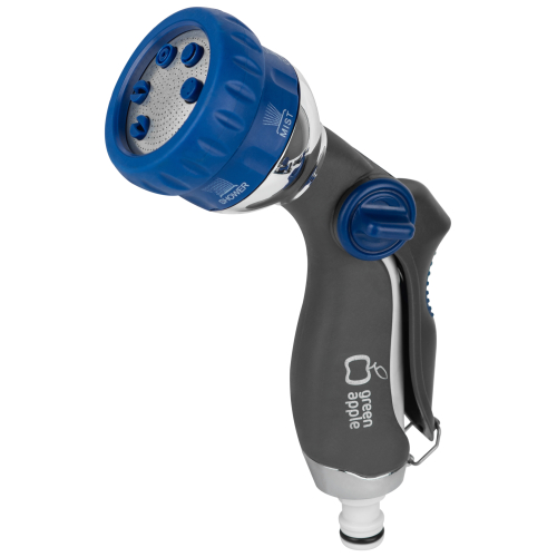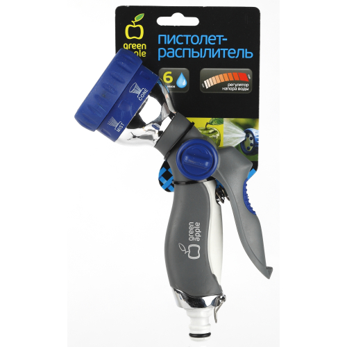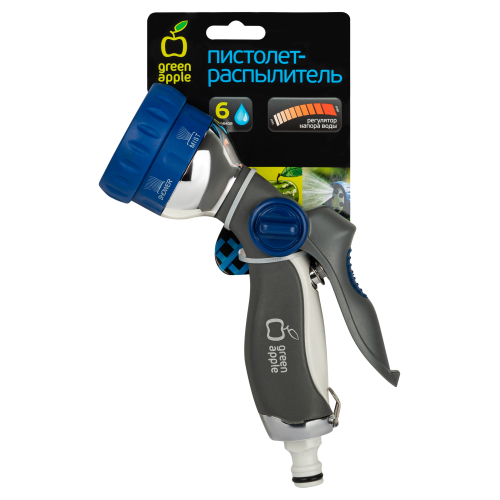Пистолет-распылитель "Green Apple" предназначен, в зависимости от режима, для решения различных задач по поливу и проведению очистительных работ. Снабжен регулятором изменения интенсивности струи и фиксатором для длительного полива. Он имеет шесть режимов полива: вода может распыляться тонкой водяной пылью, а может подаваться концентрированной струей, с помощью которой можно помыть машину, смыть пыль и строительный мусор. Приятной особенностью распылителя является возможность использования его в качестве насадки для дачного душа. Установив его стационарно, Вы получите эффективную систему орошения для одного конкретного участка площади.