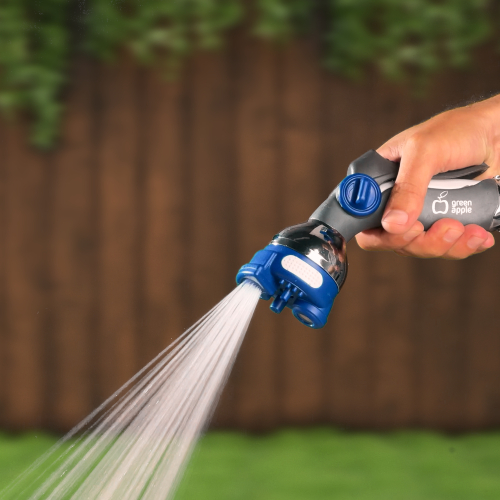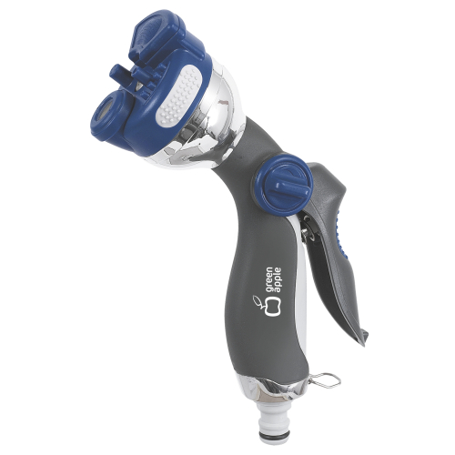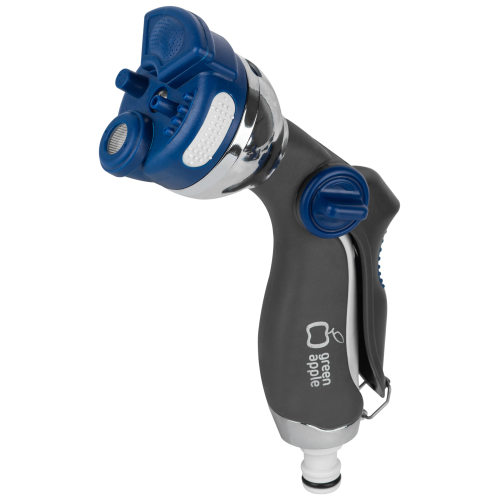 Пистолет-распылитель "Green Apple" предназначен, в зависимости от режима, для решения различных задач по поливу и проведению очистительных работ. Модель Green Apple GWHM12-035 оснащена регулируемой латунной форсункой, при помощи которой можно изменять интенсивность струи. Наличие фиксатора позволяет настроить пистолет-распылитель на длительный режим работы. Регулятор расхода воды позволит экономить, обеспечивая оптимальный расход воды для той или иной цели.
