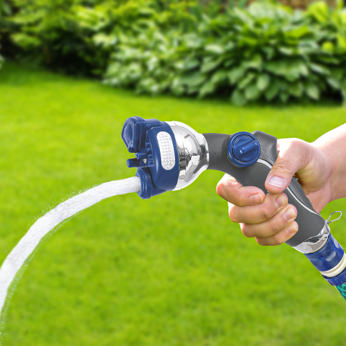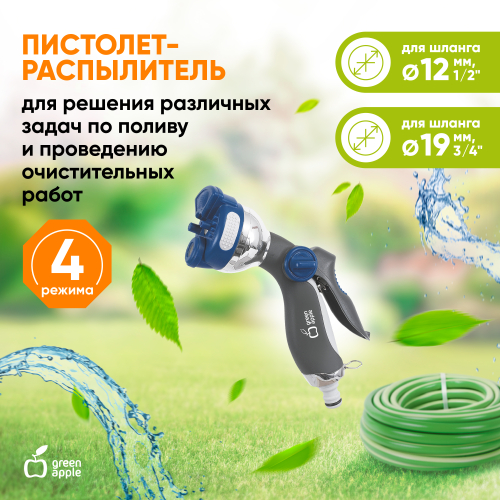 Особенности: 4 улучшенных режима полива, регулятор напора воды, материал корпуса сталь, пластик, эргономичная рукоятка.