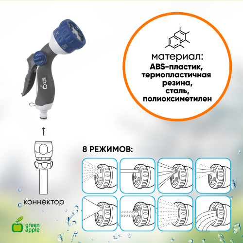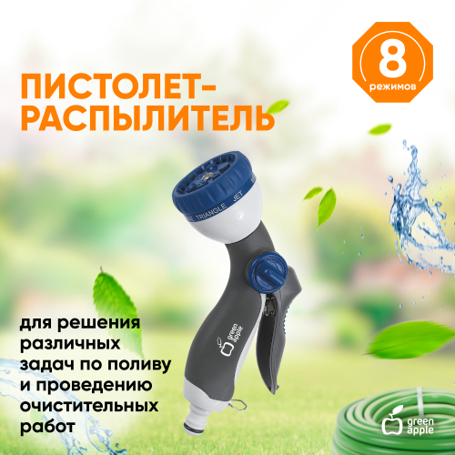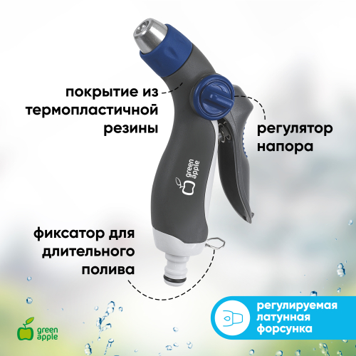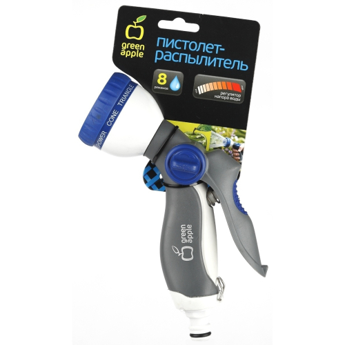 Пистолет-распылитель Green Apple - это очень удобный аксессуар для полива. Он предназначен, в зависимости от режима, для решения различных задач по поливу и проведению очистительных работ. Снабжен плавным регулятором изменения интенсивности струи и фиксатором для длительного полива.