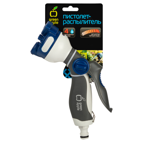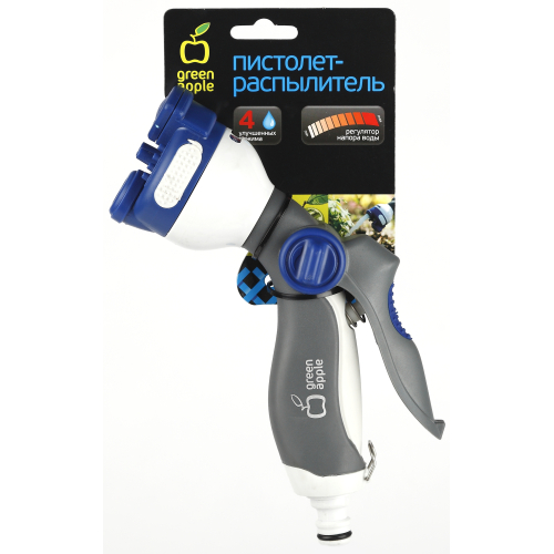 Пистолет-распылитель Green Apple GANS-02 позволяет справляться с различными задачами полива садово-огородных участков и очистки различных поверхностей от загрязнений. Регулировка полива осуществляется выбором одного из 4 режимов. Эргономичная рукоятка предотвращает скольжение в руке во время полива. Плавный регулятор позволяет настраивать подходящую интенсивность подачи воды. Быстросъемное соединение обеспечивает легкость подключения к поливочному шлангу с адаптером.