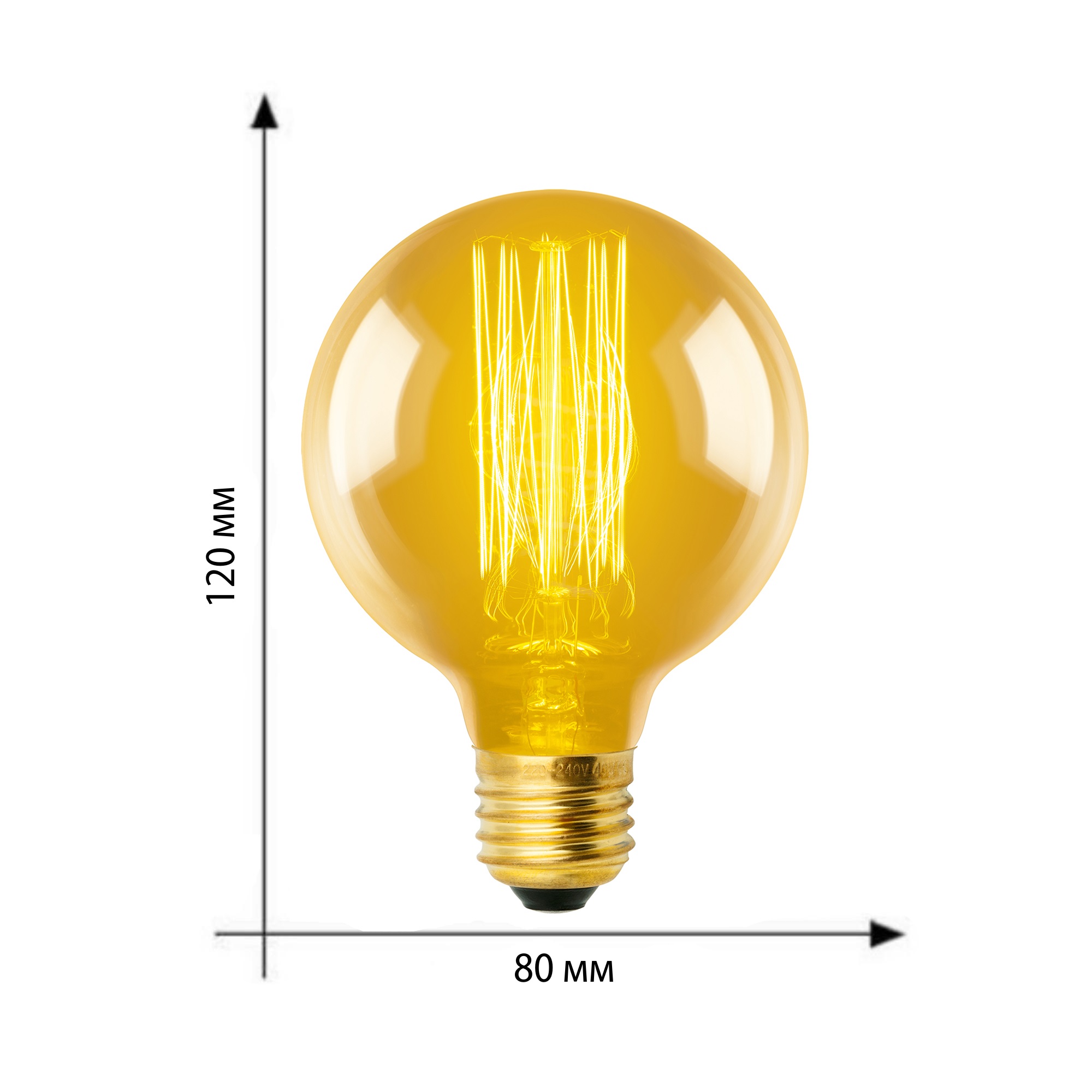 Лампа накаливания IL-V-G80-60/GOLDEN/E27 VW01 серии Vintage предназначена для декоративного освещения в помещении. Лампы накаливания серии Vintage подарят атмосферу уюта в интерьере благодаря теплому свечению. Колба ламп выполнена из золотистого прозрачного стекла. Лампа имеет стандартный цоколь Е27. Форма колбы - шар. Мощность - 60 Вт. Угол светового потока - 360 °. Световой поток 300 лм. Форма нити VW. Лампы накаливания серии Vintage с уютным теплым свечением - отличное решение для декоративного оформления интерьера и акцентного освещения. Габариты изделия - ШхВ 80х120 мм. Общий вес - 125 г. Срок службы - 5000 часов.