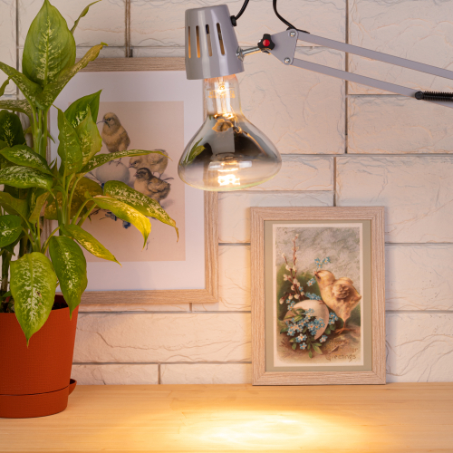 Инфракрасная зеркальная лампа с прозрачной колбой. Совмещает тепловой и осветительный эффект. Универсальный источник света и тепла. Применяется как для обогрева, так и для освещения. Активно используется в животноводстве, птицеводстве и растениеводстве. Подходит для эффективного обогрева как жилых, так и производственных помещений, а также для досветки растений. 100 % энергии переходит в тепловую. Работа лампы не зависит от скачков сети, микроимпульсов. Не требуются стабилизаторы напряжения – лампа работает даже при пониженном напряжении. Мгновенно включается и нагревается. Минимум пульсаций освещения. Компактные размеры (удобно при транспортировки и использовании). Универсальный патрон Е27, который подходит для большинства цоколей и светильников). Используется только с керамическими цоколями (не с пластиковыми!).