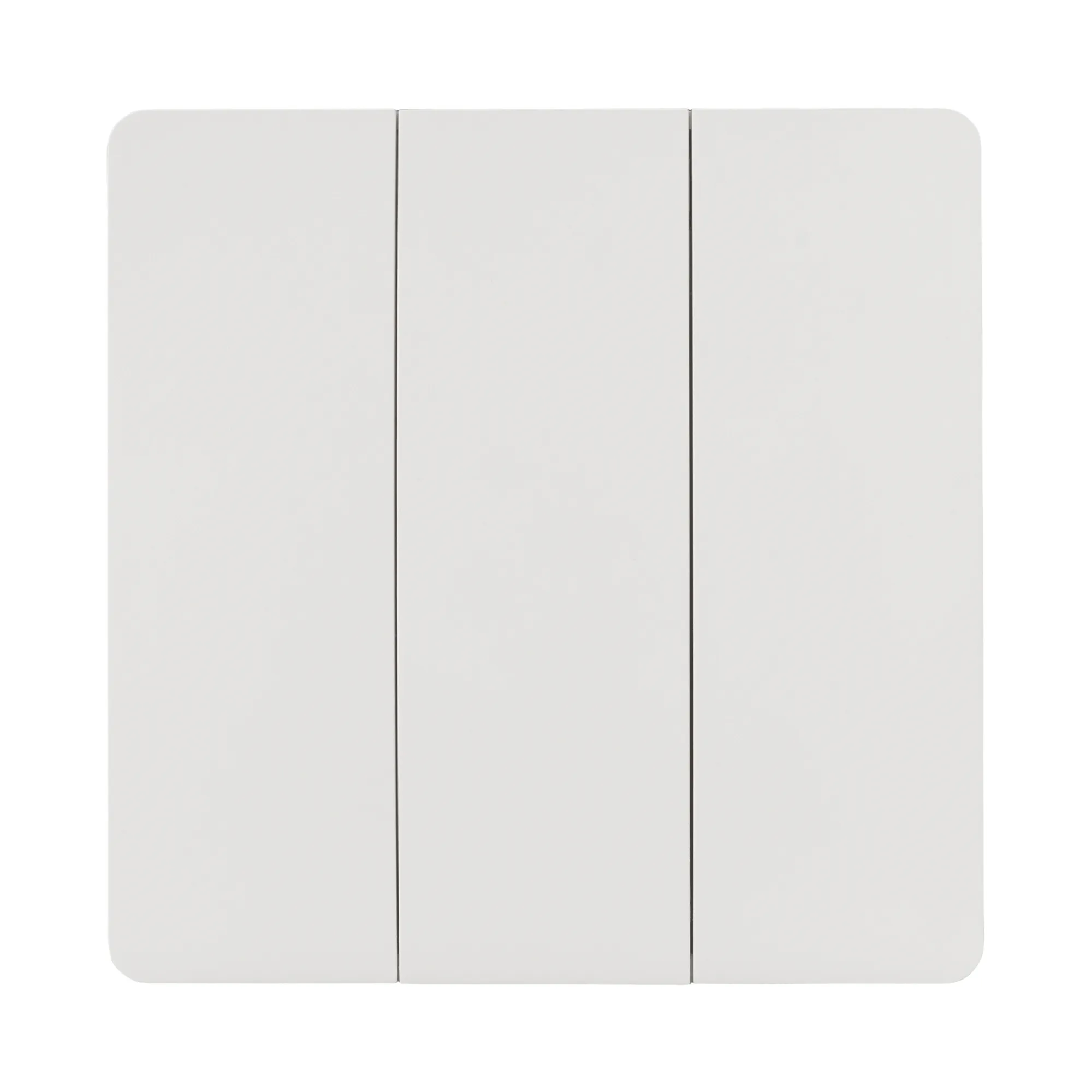 Накладная кнопочная панель белого цвета, изготовленная из пластика. Предназначена для управления одноцветными источниками света (ШИМ) с помощью кнопок. Основные выполняемые функции: включение и выключение света, регулировка яркости. Удобное и точное управление с помощью эргономичных кнопок. Изделие применяется в качестве трёхзонного пульта дистанционного управления диммерами и релейными модули серий TUYA-***-WF и TY-***-WF, поддерживающими управление по радиоканалу 433MHz. Не требует питания, имеет встроенный кинетический источник питания. Габариты панели 86х86х14 мм, корпус выполнен из пластика. Устройство устанавливается на любую поверхность, к которой возможно прикрутить монтажную базу панели.