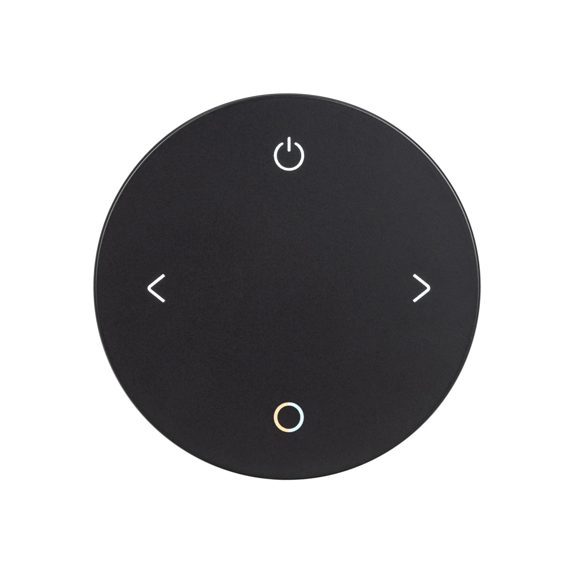 Кнопочный радиочастотный пульт черного цвета, предназначенный для управления мультибелыми (MIX) источниками света. Поддерживает основные функции: включение и выключение света, регулировку яркости, изменение цветовой температуры. Устройство совместимо с диммерами и контроллерами серии SMART, поддерживающими управление по радиоканалу 2.4G. К одному пульту возможно привязать неограниченное количество диммеров и контроллеров. Устройство поддерживает 1 зону управления. Питание 3В осуществляется от батарейки CR2032. Корпус пульта выполнен из пластика, защищающего от загрязнения. Магнитное основание в комплекте. Габариты устройства 75x75x18 мм.