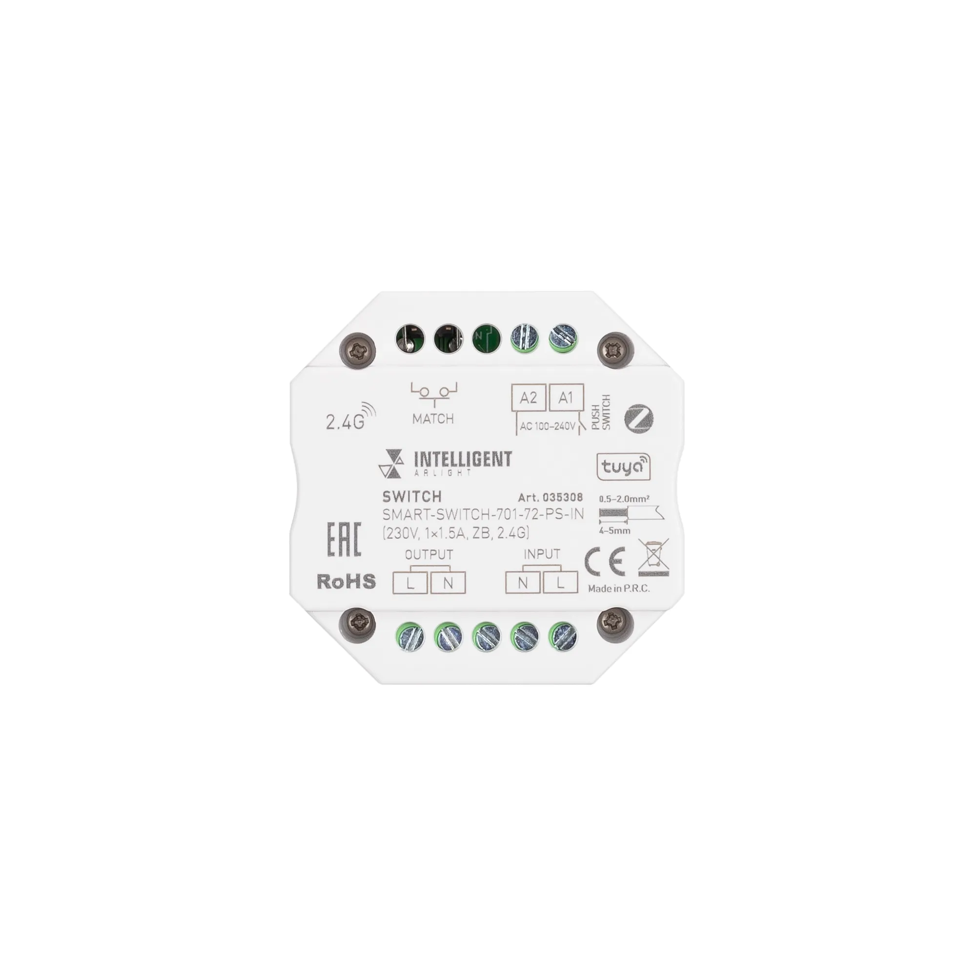 Релейный модуль, предназначенный для включения и выключения источников света с напряжением питания 230 В. Диммер управляется по ZigBee и совместим беспроводной облачной платформой TUYA и АЛИСА от ЯНДЕКС при использовании конвертера ZigBee-WiFi. Поддерживает управление пультами и панелями ДУ (RF, 2.4 ГГц) серии SMART. В устройстве реализовано управление выключателем возвратного типа (функция Push-SWITCH). При использовании конвертера WiFi-ZigBee может выступать в качестве конвертера WiFi в RF. Позволяет синхронно управлять одним или несколькими диммерами и контроллерами серии SMART с помощью мобильных устройств.