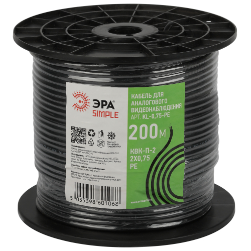 Кабель КВК-П-2 +2x0,75 мм² ЭРА применяется при подключении систем аналогового видеонаблюдения. Кабель предназначен для передачи телевизионного сигнала с одновременным подключением питания и/или передачи сигналов управления на расстояние, не превышающее 150 м. Для прокладки вне помещений устойчив к воздействию ультрафиолетового излучения.