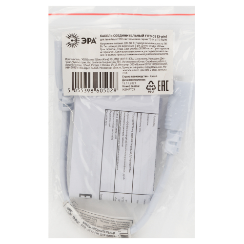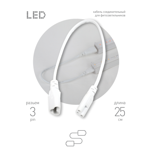 Соединительные провода от ЭРА позволяют создать в домашних условиях целый комплекс по выращиванию рассады, комнатных растений или цветов, микрозелени. Несколько линейных светильников теперь несложно соединить в цепи с питанием от одной розетки. Данный двужильный кабель ЭРА FITO - C5 (3-pin) для соединения линейных светильников серий FITO Т5-N и Т5-Ra90 имеет длину 33 см. Кабель ПВС 2х05 мм2. Тройной штекер на тройной разъём.